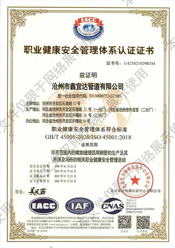 滄州市鑫宜達(dá)管道有限公司社會(huì)責(zé)任報(bào)告